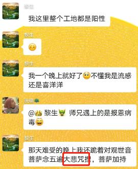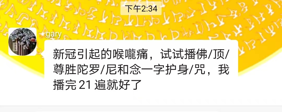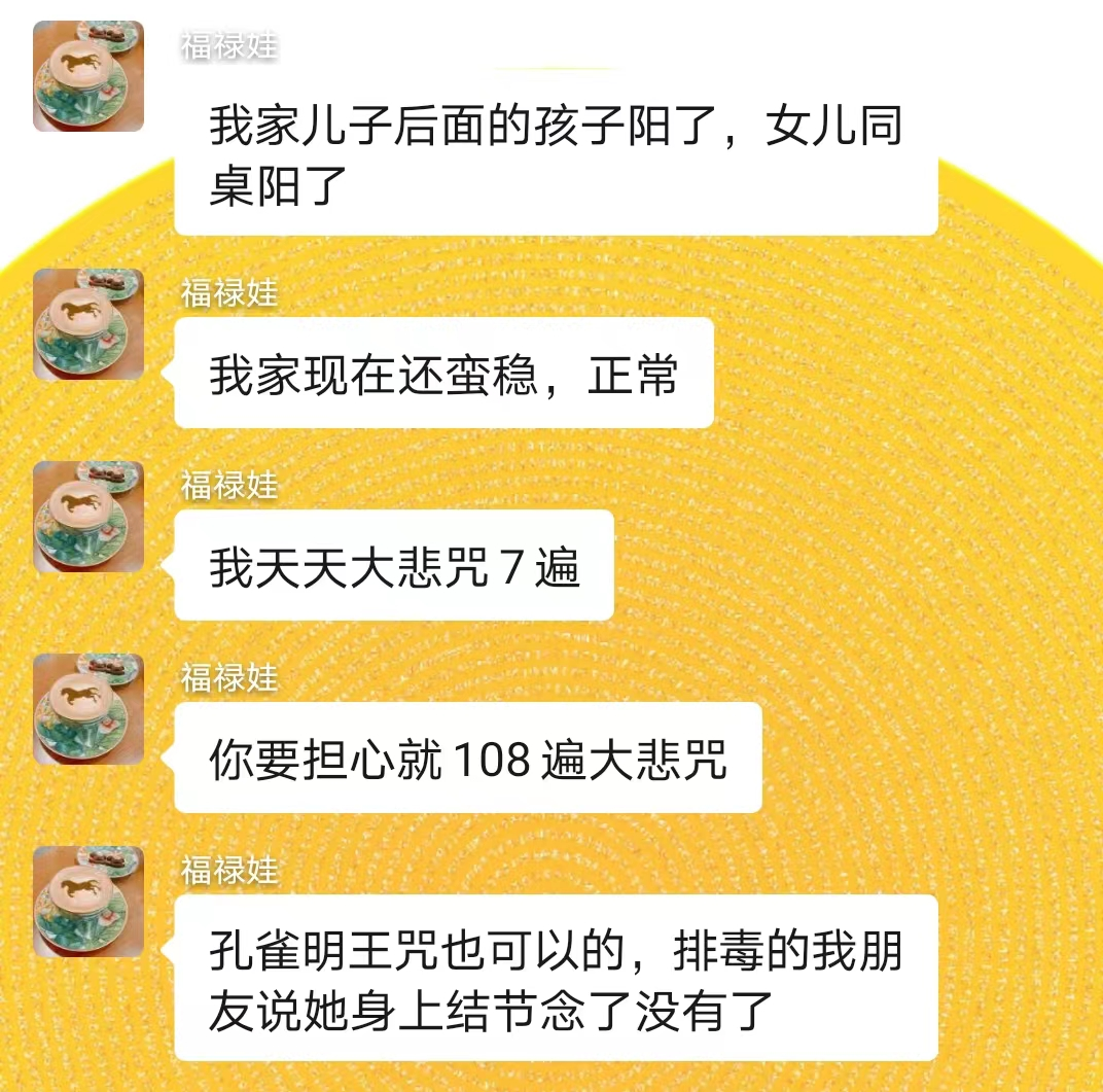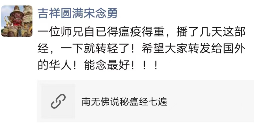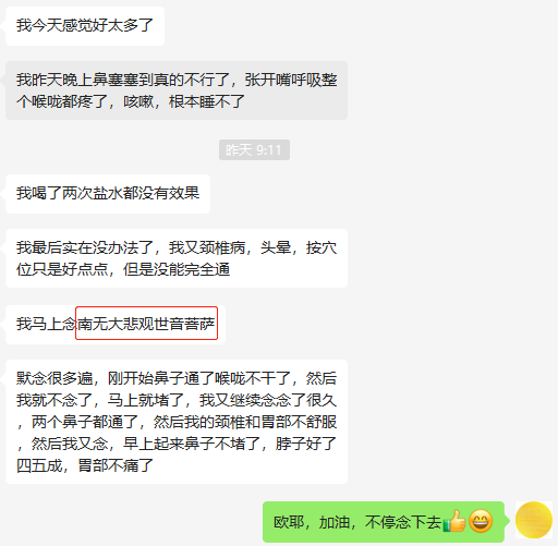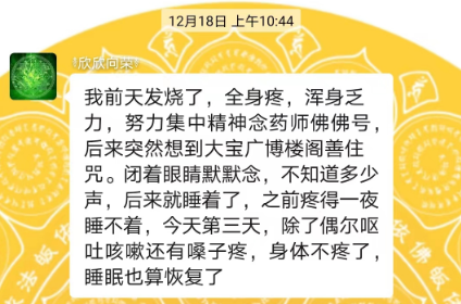 一位不幸染阳的师兄不停念南无观世音菩萨名号,消除了各种不舒服症状