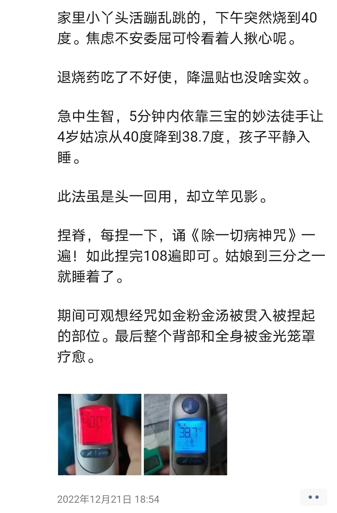 下面是除一切疾病神咒 治疗阳性发烧孩子的案例